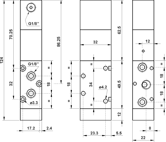 G1/8" 22 mm Valf