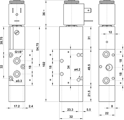 AZ Pneumatica > Pnömatik > AZ Pneumatica > Pnömatik Valfler > Elektropnömatik Valfler > G1/8" 22 mm Elektropnömatik Valfler