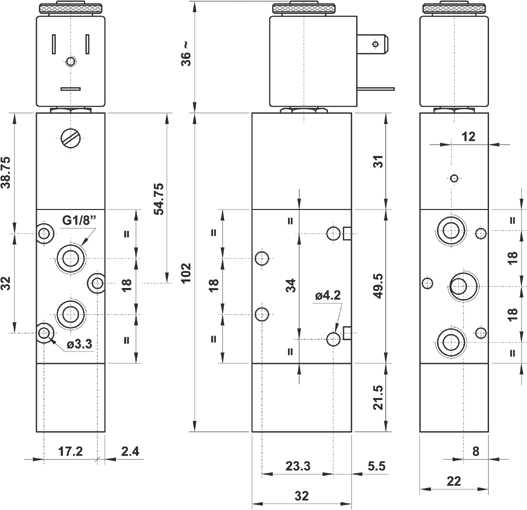 AZ Pneumatica > Pnömatik > AZ Pneumatica > Pnömatik Valfler > Elektropnömatik Valfler > G1/8" 22 mm Elektropnömatik Valfler