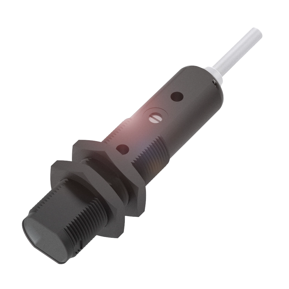 M18 dişli ve farklı ışık tiplerine sahip silindirik difüzör sensörleri