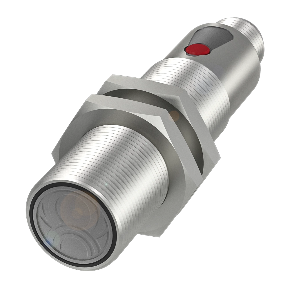 M18 dişli ve farklı ışık tiplerine sahip silindirik difüzör sensörleri