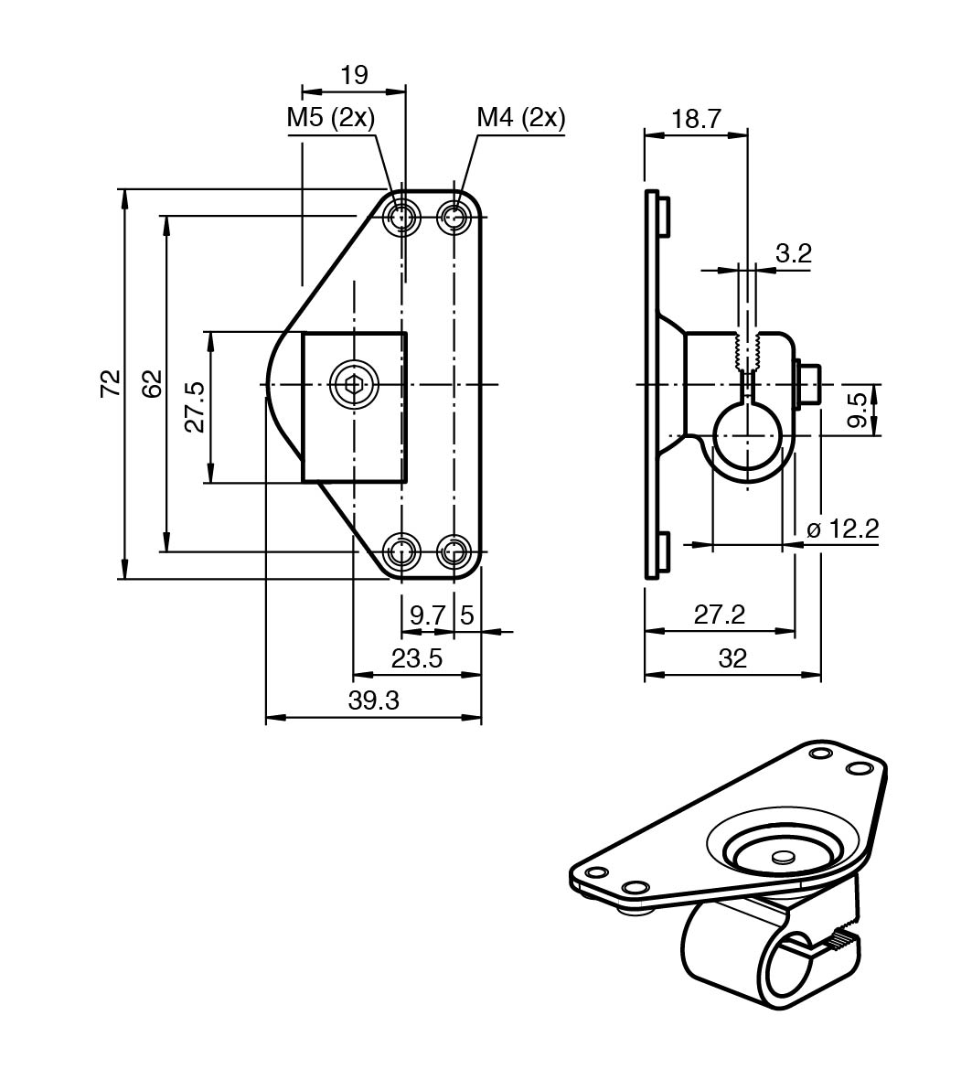Bracket for round steel or sheet