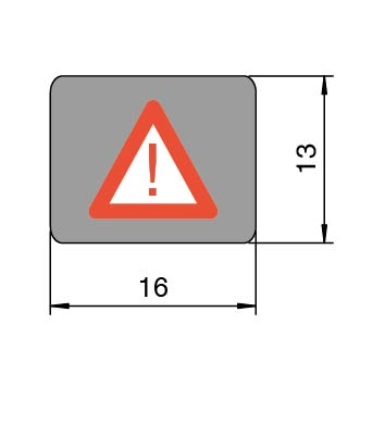 Rectangular shape, 16 mm x 13 mm