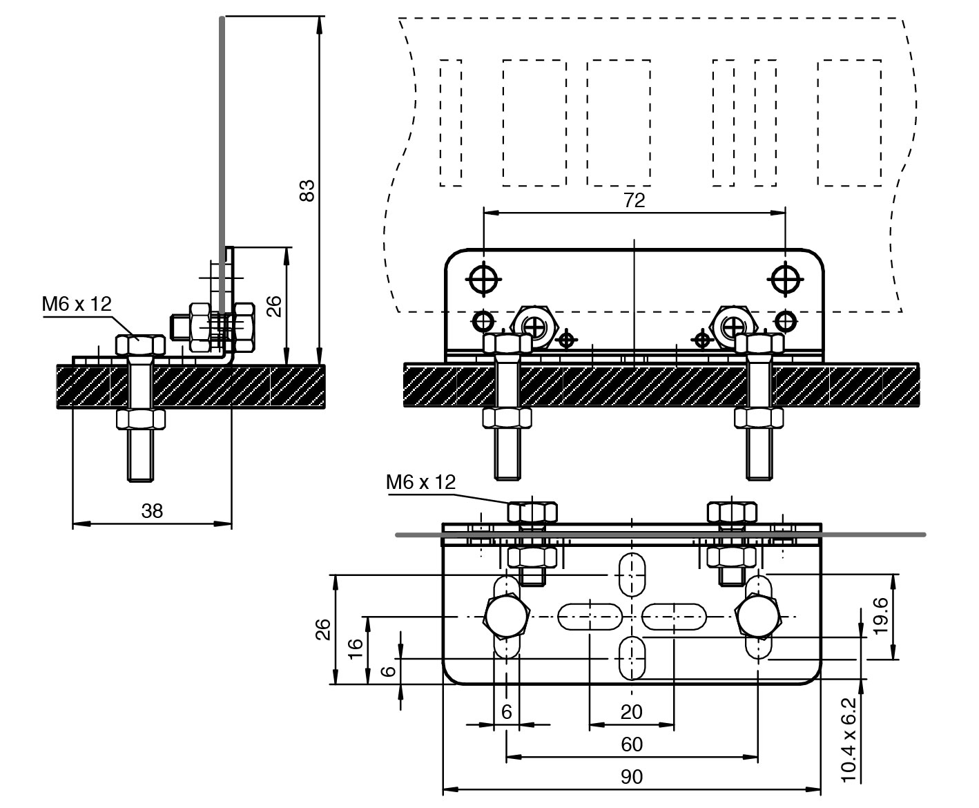 Supplied with M6 mounting screws