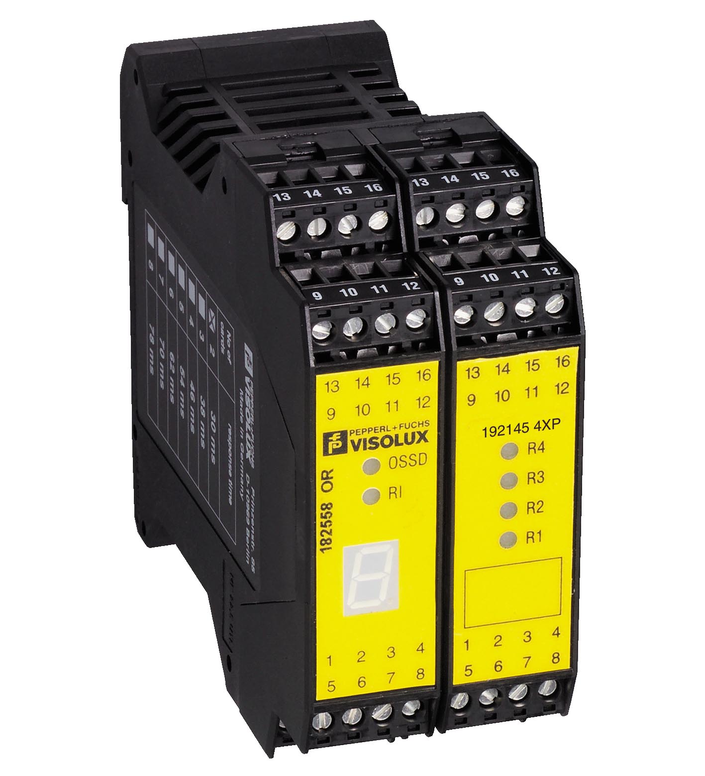 Evaluation unit for security through-beam sensors SLA5(S) and SLA40; for safety Işık Bariyerleri SLP, for safety light curtains SLC; for switching pads and emergency stop buttons of categories 2 and 4