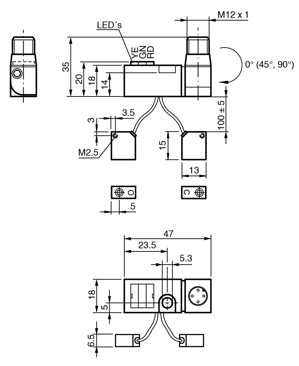 M12 plug with safety screw assembly adjustable in 45° grid