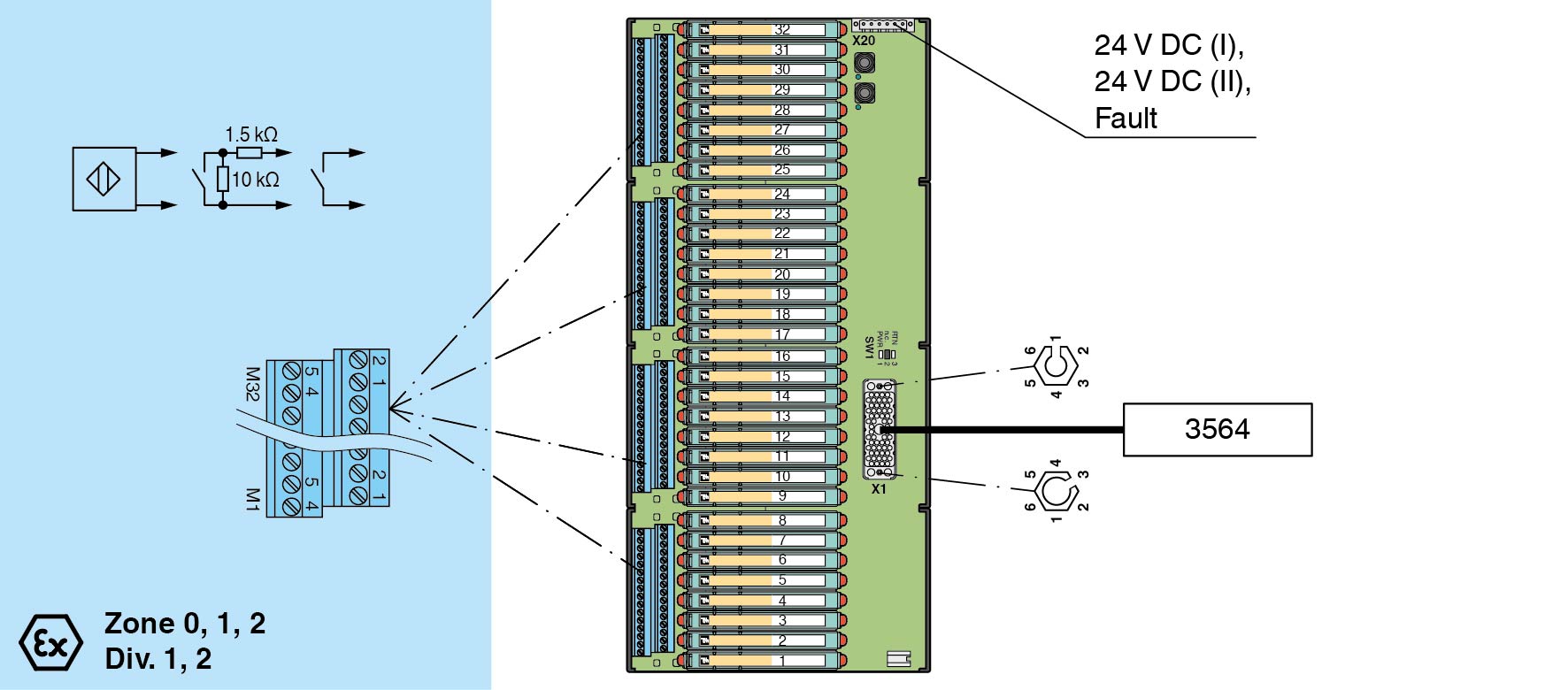 For 64-channel (32+32) DI card 3564