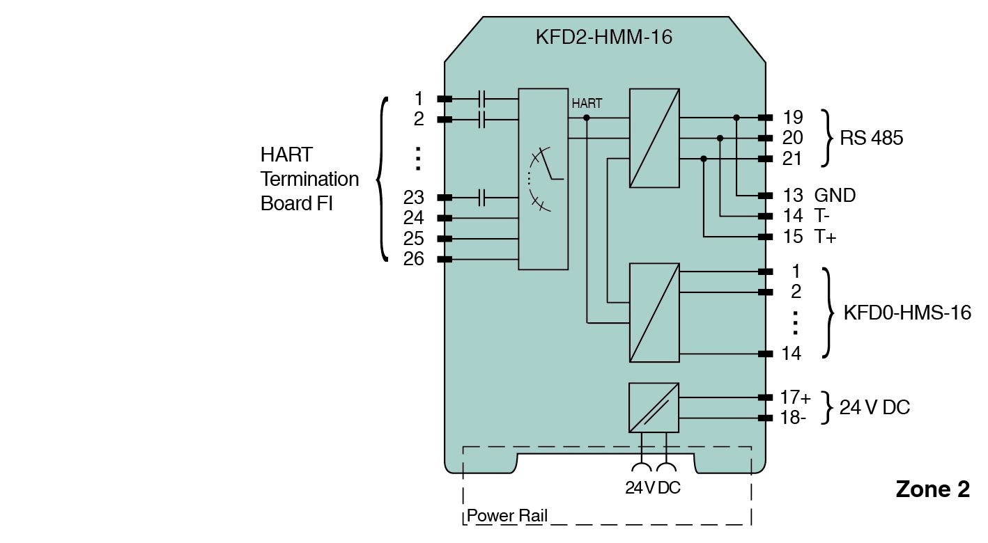 Up to 15 KFD0-HMS-16 HART MUX secondary Modüller can be connected