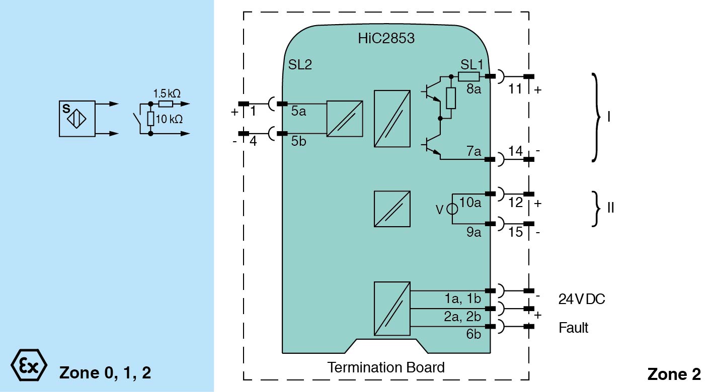 Input for approved dry contacts or SN/S1N sensors