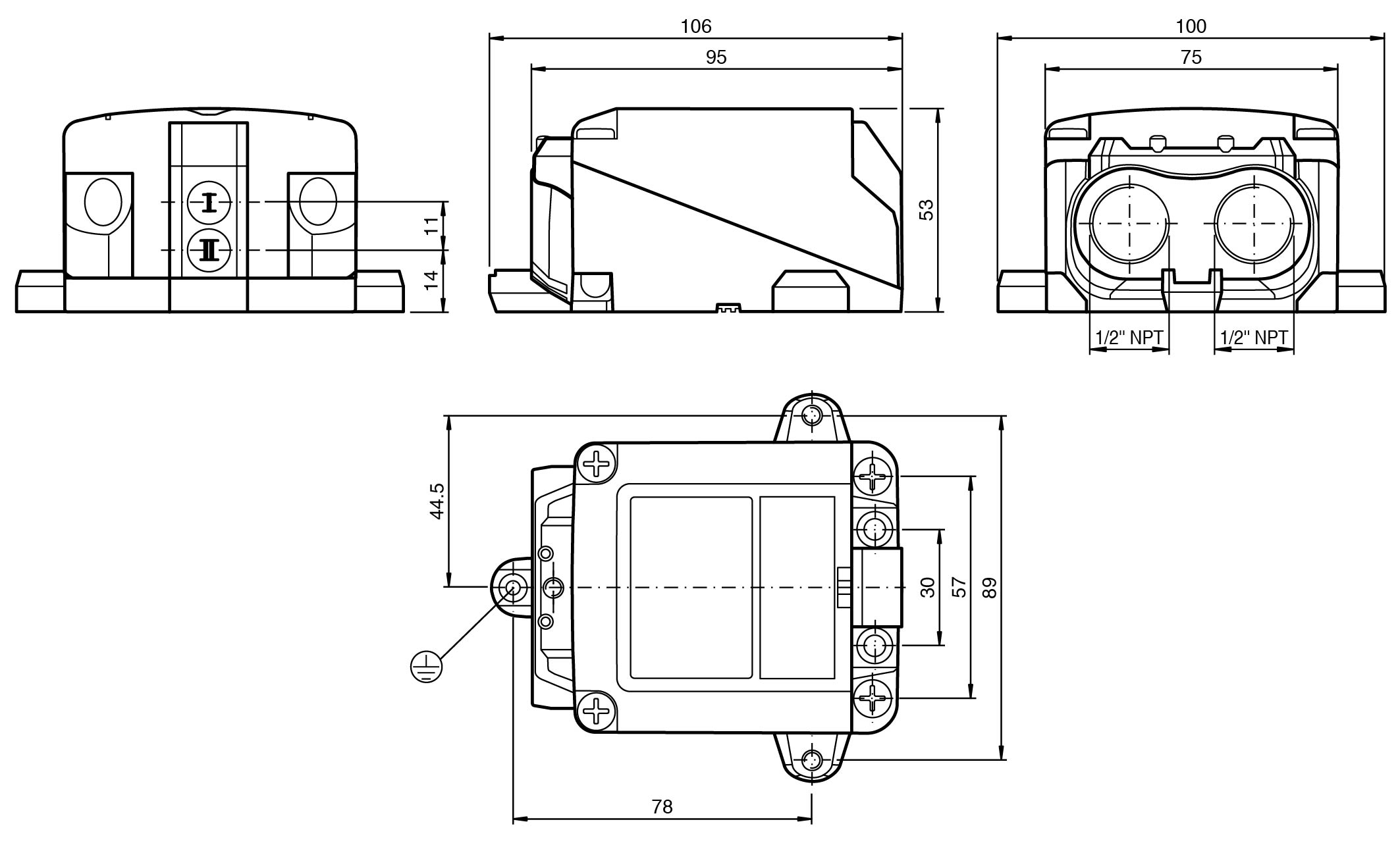1/2" NPT conduit entrance