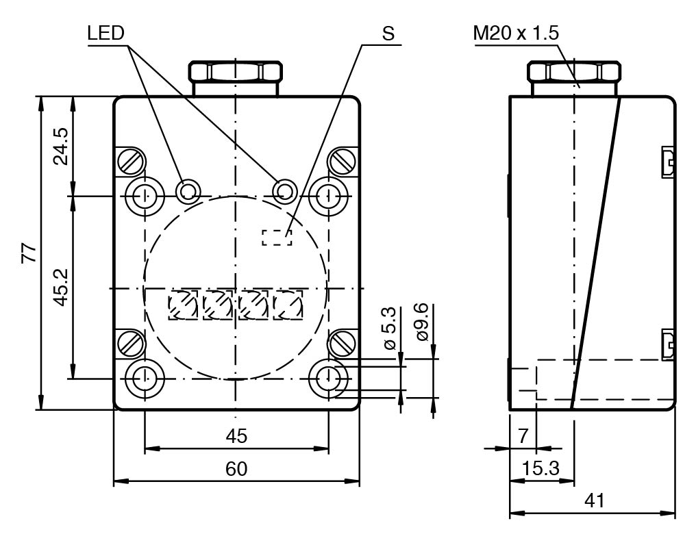 Switching function NO/NC can be set by coding plug S