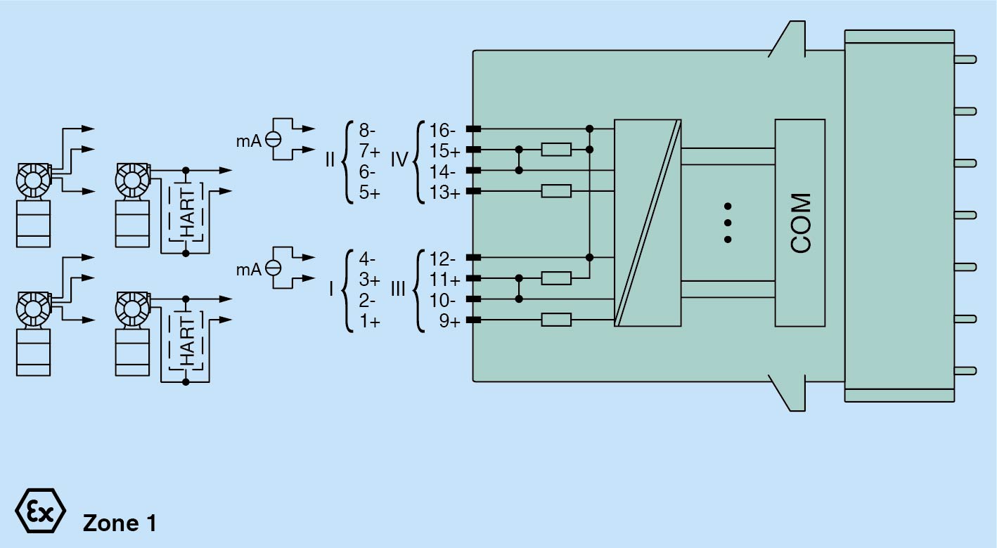 Inputs with plug-in Ex e terminals