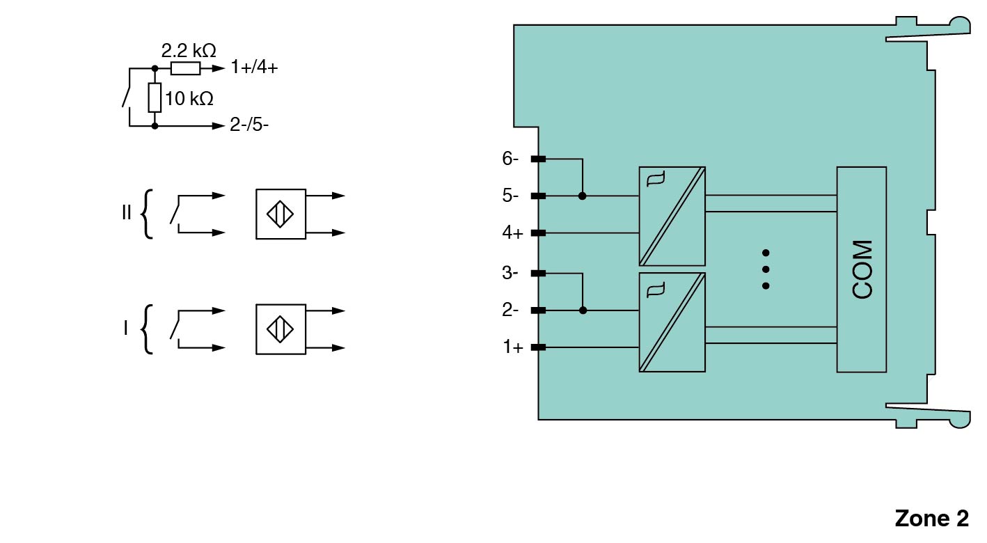 Dry contact or NAMUR inputs