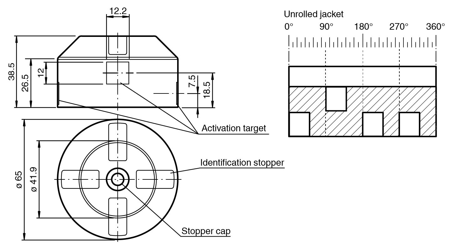 Four fixed actuating lugs, offset by 90°