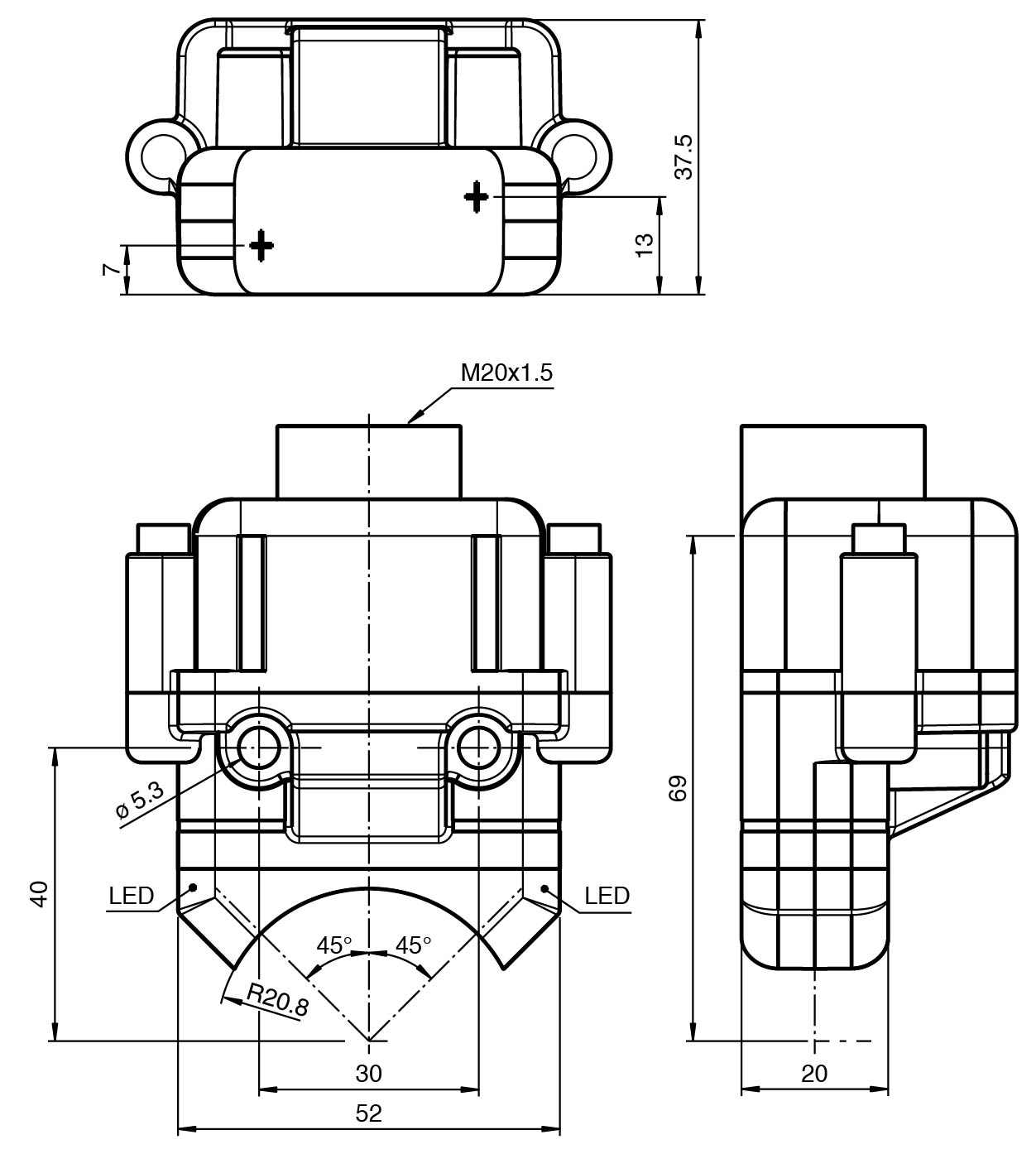 Small construction with sturdy plastic housing of protection class IP 67