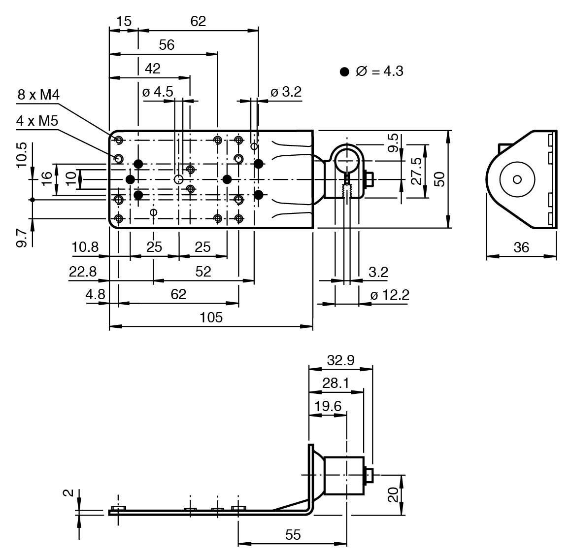 Bracket for round steel or sheet