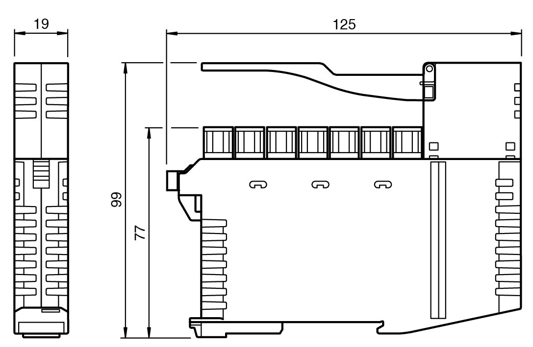 Housing width 19 mm, installation in the switch cabinet on DIN mounting rail