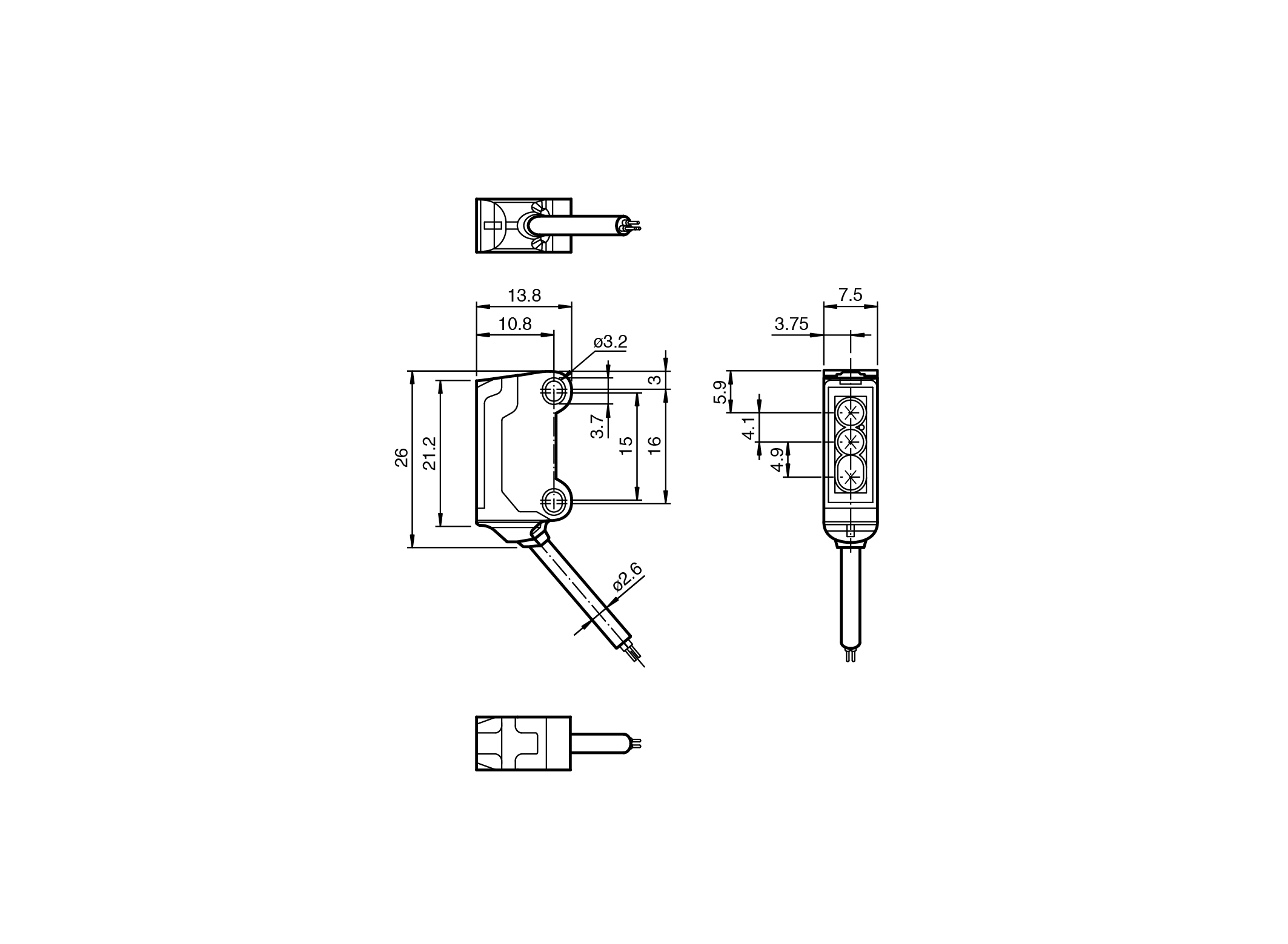 45° cable outlet for maximum mounting freedom under extremely tight space constraints