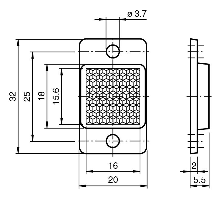 Reflektör, Iki Montaj Deliği Olan Dikdörtgen
