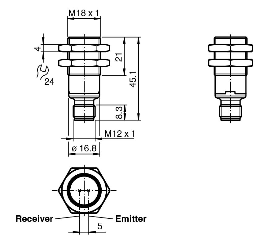 Short design in M18 plastic housing