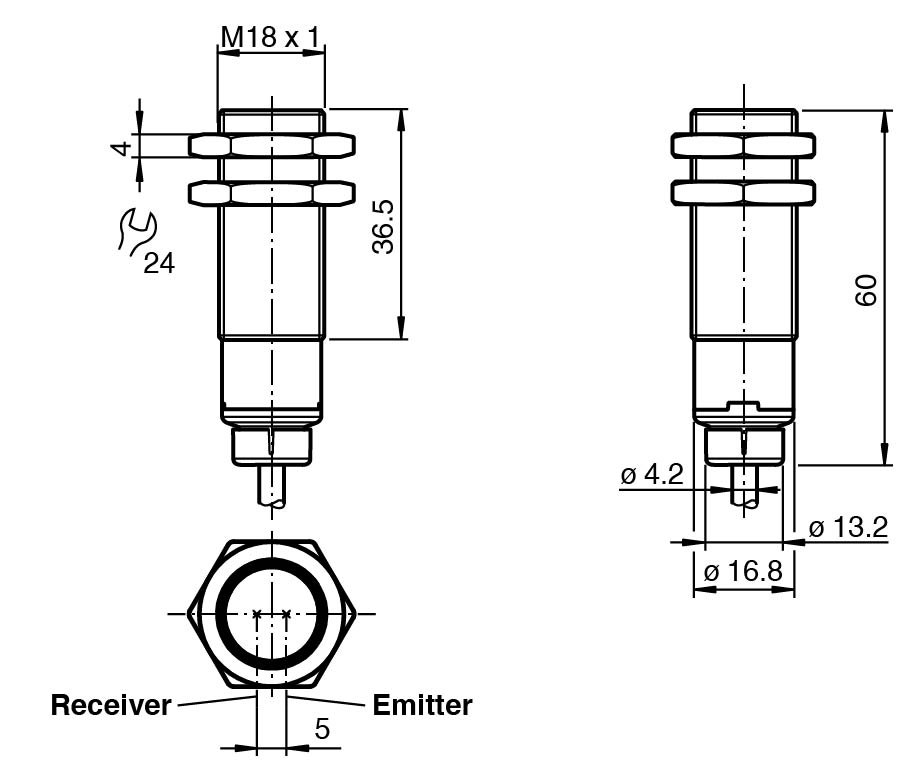 Strong metallic housing in cylindrical shape M18 x 1