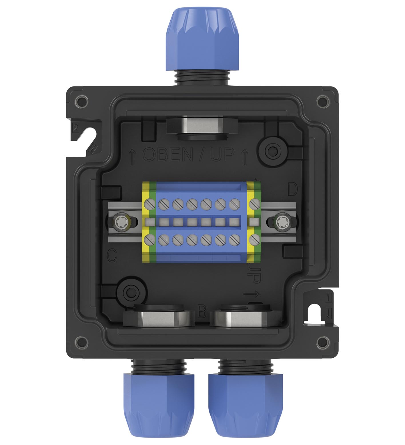 Top face Kablo Rakoru polyamide, 1x M20; bottom face Kablo Rakoru polyamide, 2x M20