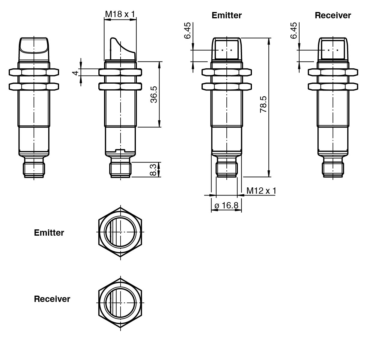 Strong metallic housing in cylindrical shape M18 x 1