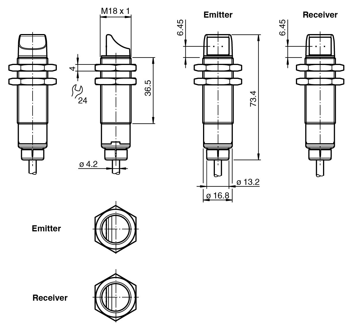 Strong metallic housing in cylindrical shape M18 x 1