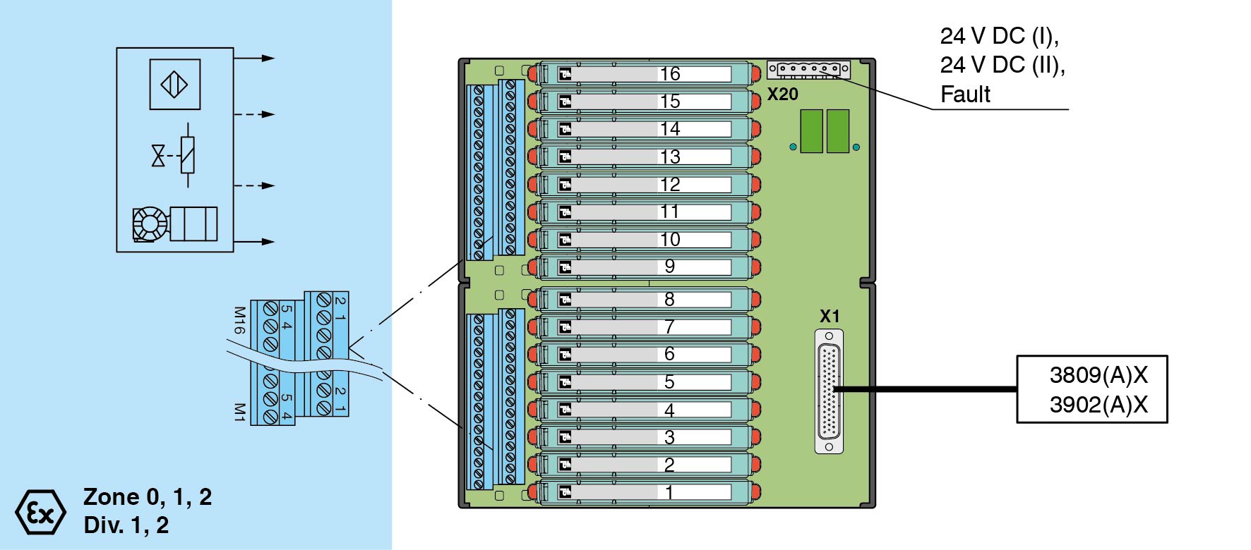 For 16-channel universal I/O card 3902(A)X and AO card 3809(A)X