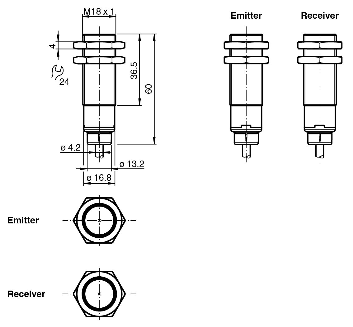 Strong metallic housing in cylindrical shape M18 x 1
