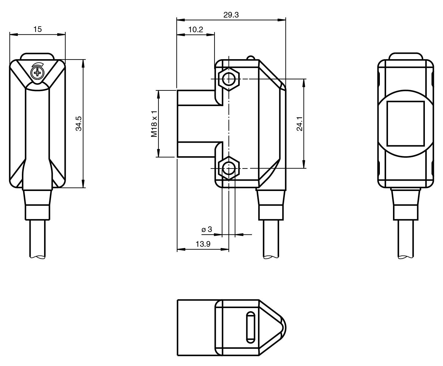 Front mounting with M18-threads or side mounting holes