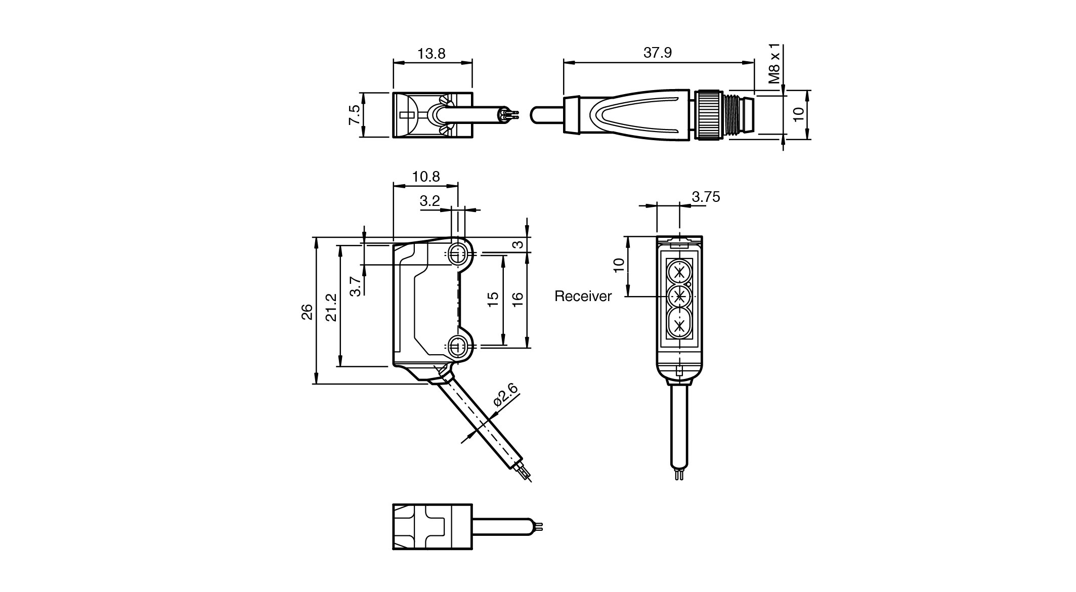 45° cable outlet for maximum mounting freedom under extremely tight space constraints