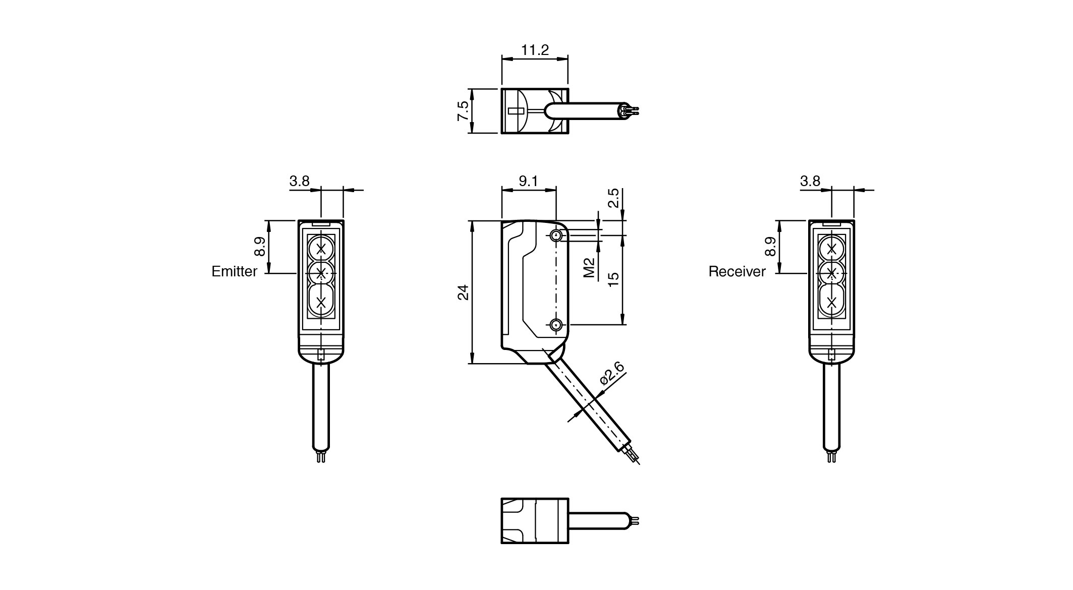 45° cable outlet for maximum mounting freedom under extremely tight space constraints