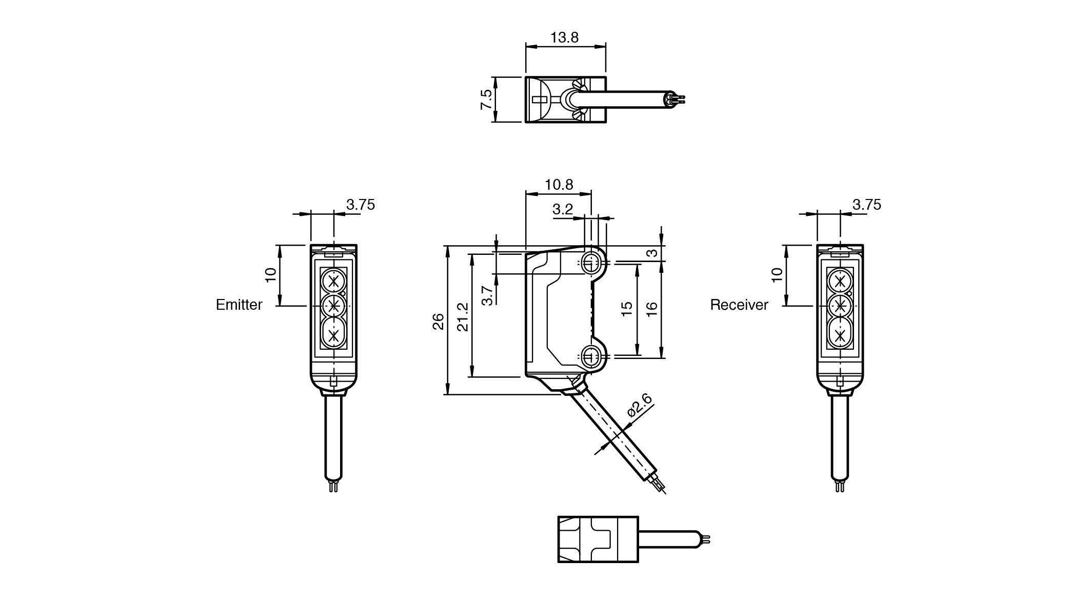 45° cable outlet for maximum mounting freedom under extremely tight space constraints