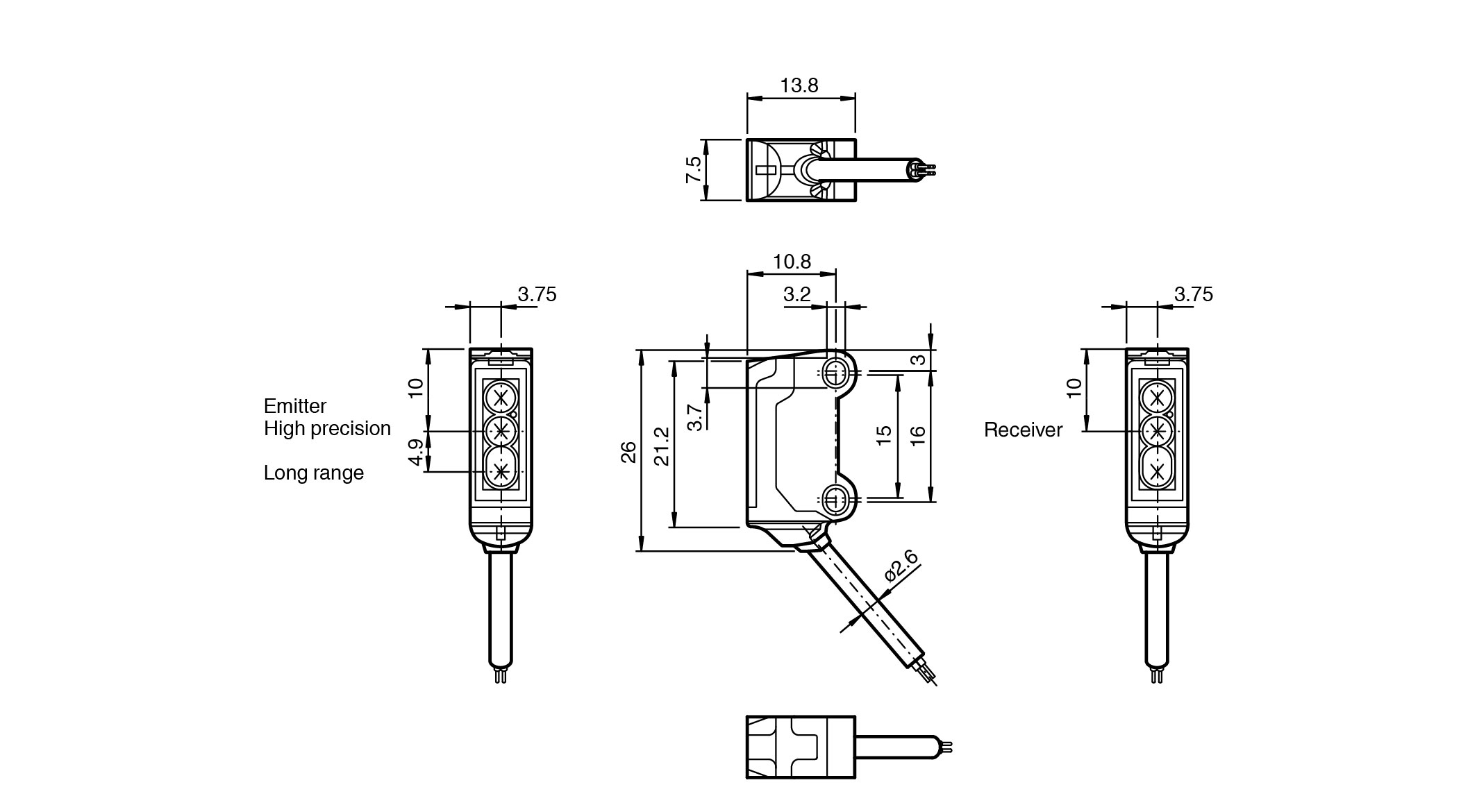 45° cable outlet for maximum mounting freedom under extremely tight space constraints