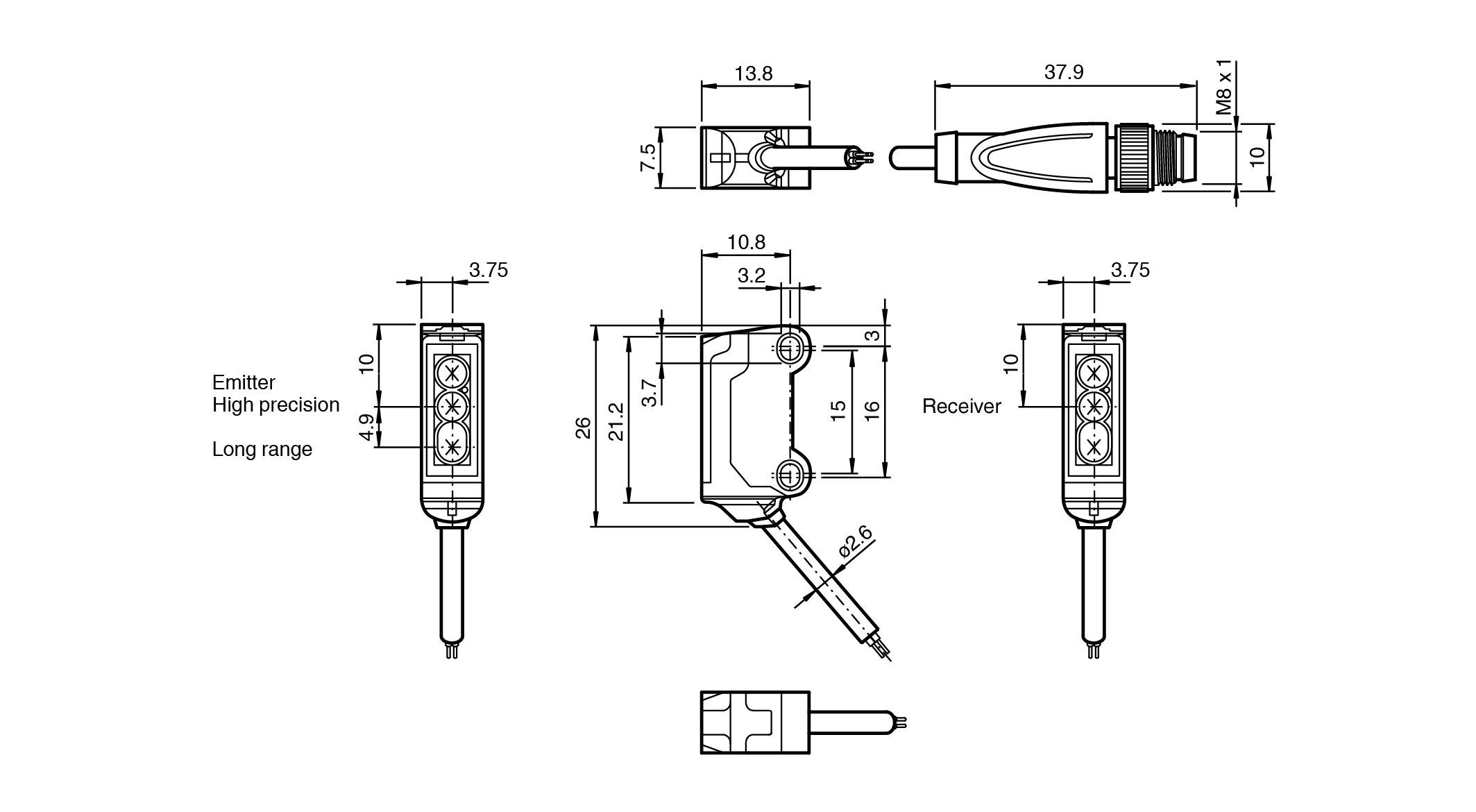 45° cable outlet for maximum mounting freedom under extremely tight space constraints