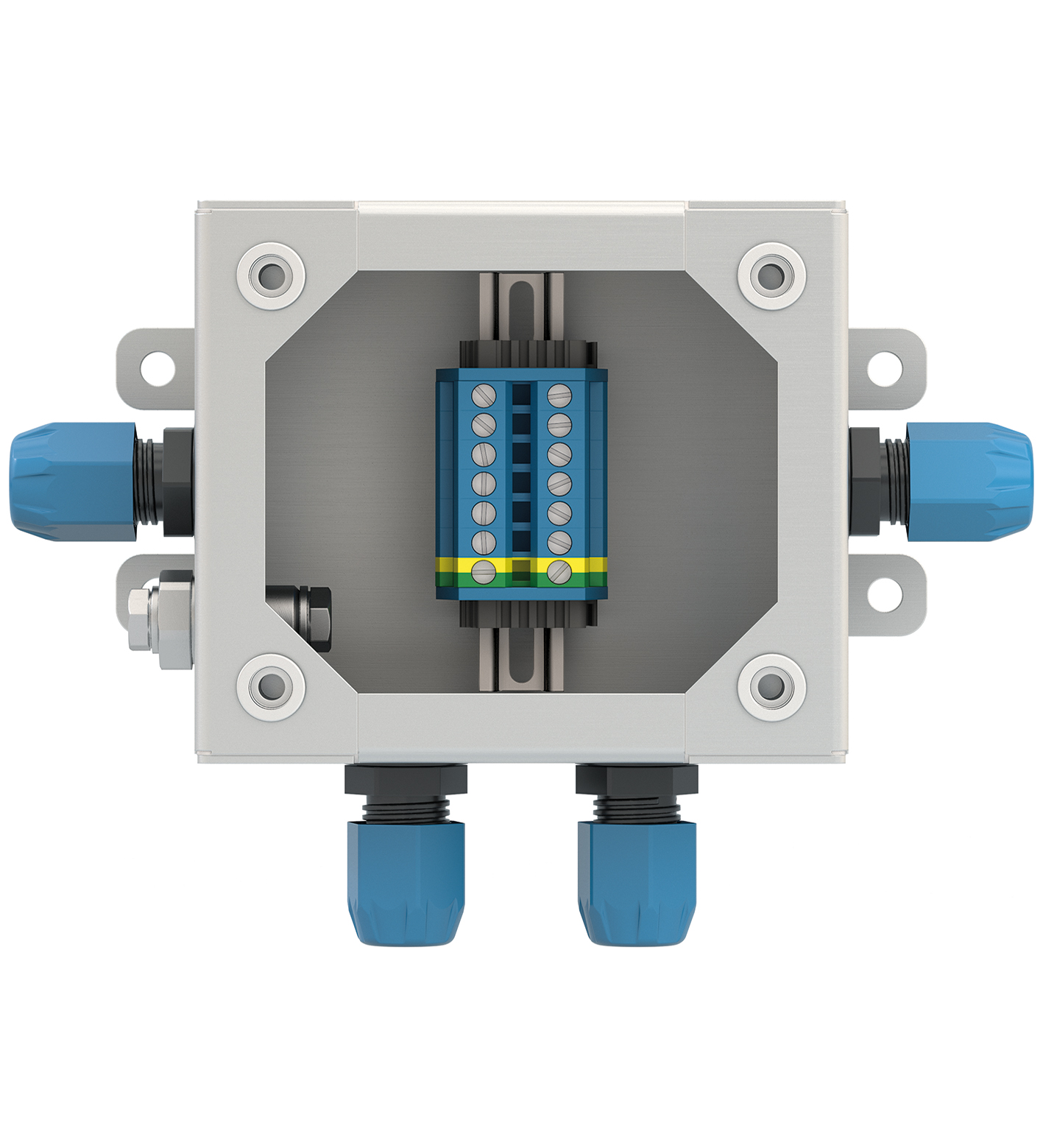 Bottom face Kablo Rakorus polyamide, 2x M16; left side Kablo Rakoru polyamide, 1x M16; right side Kablo Rakoru polyamide, 1x M16