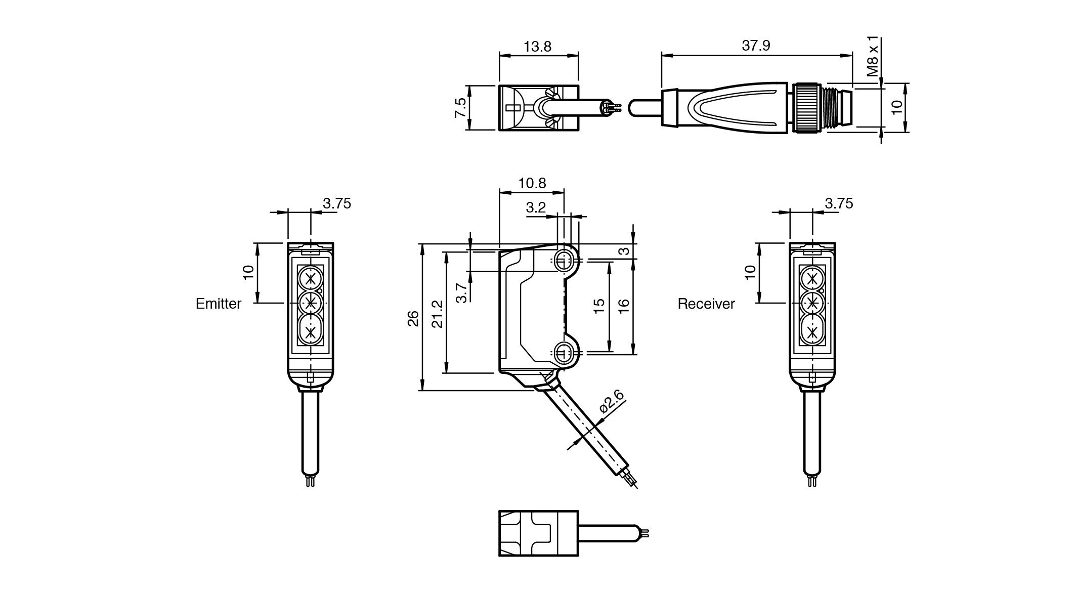 45° cable outlet for maximum mounting freedom under extremely tight space constraints