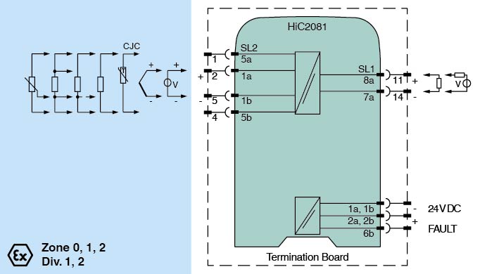 Thermocouple, RTD, potentiometer or voltage input
