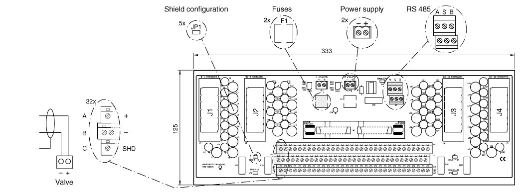Outputs: 4 x 8 channels, 4 mA ... 20 mA current loop, DC coupled