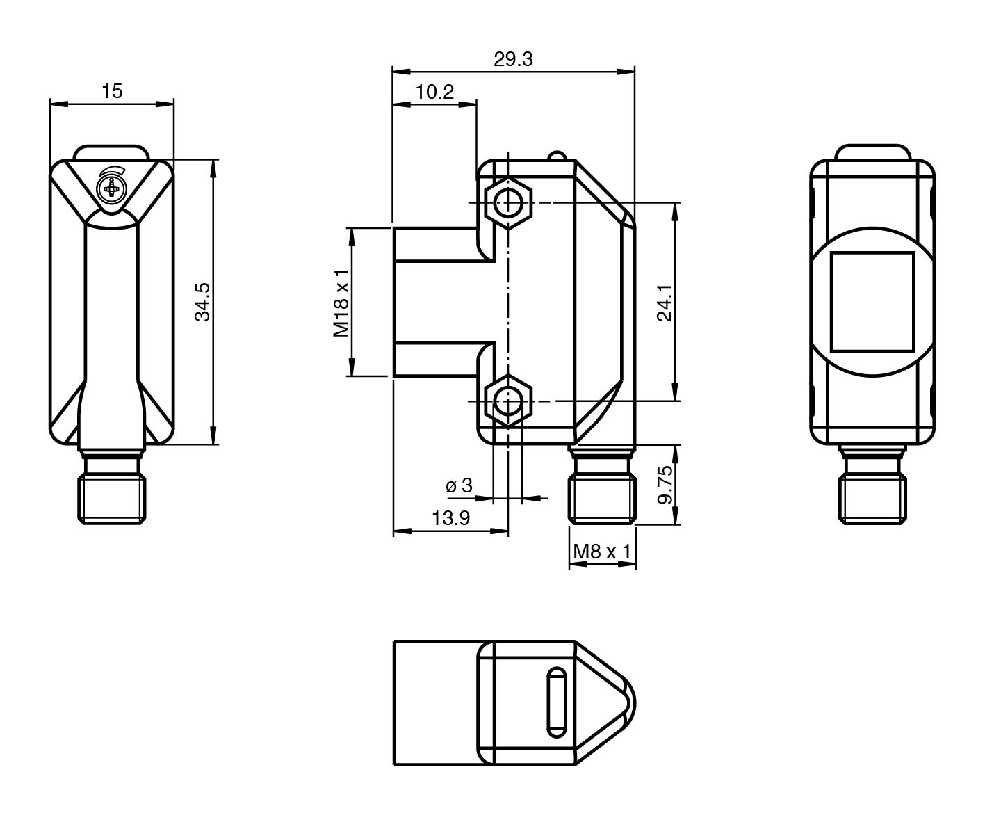 Front mounting with M18-threads or side mounting holes