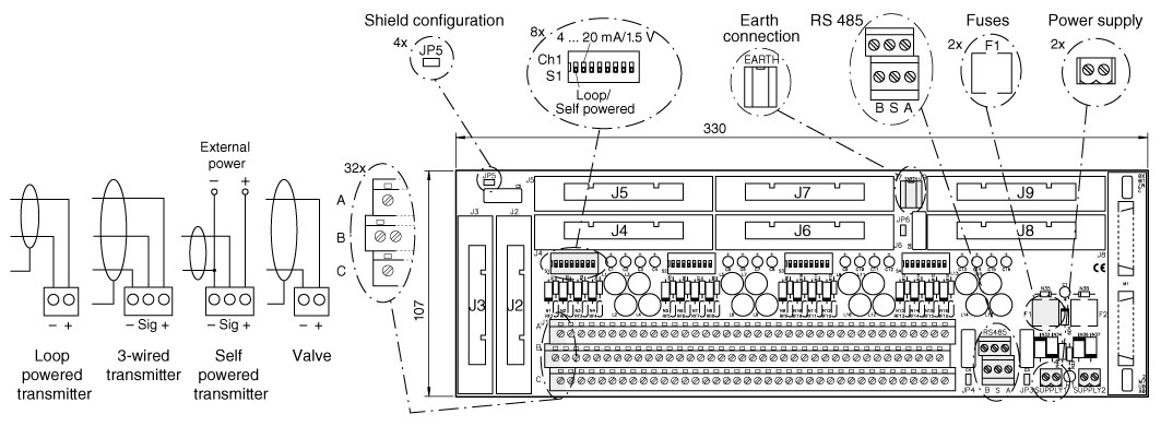 2- or 3-wire or self powered transmitters or valves