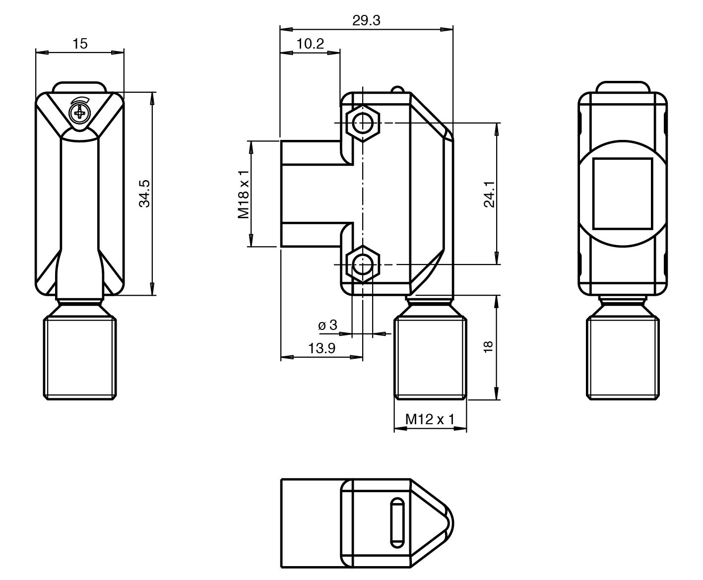 Front mounting with M18-threads or side mounting holes