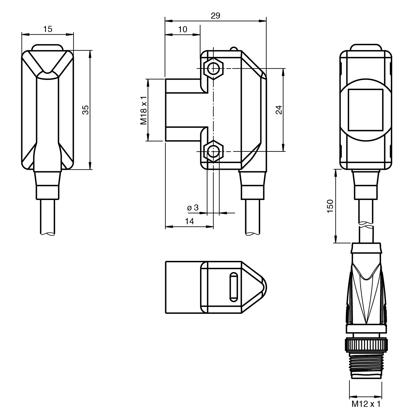 Front mounting with M18-threads or side mounting holes