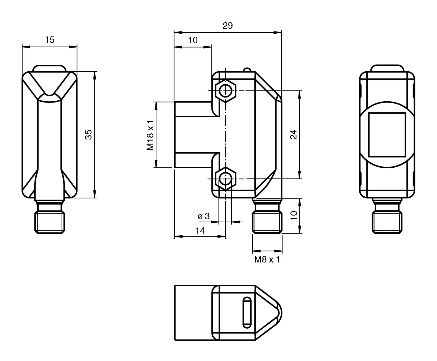 Front mounting with M18-threads or side mounting holes