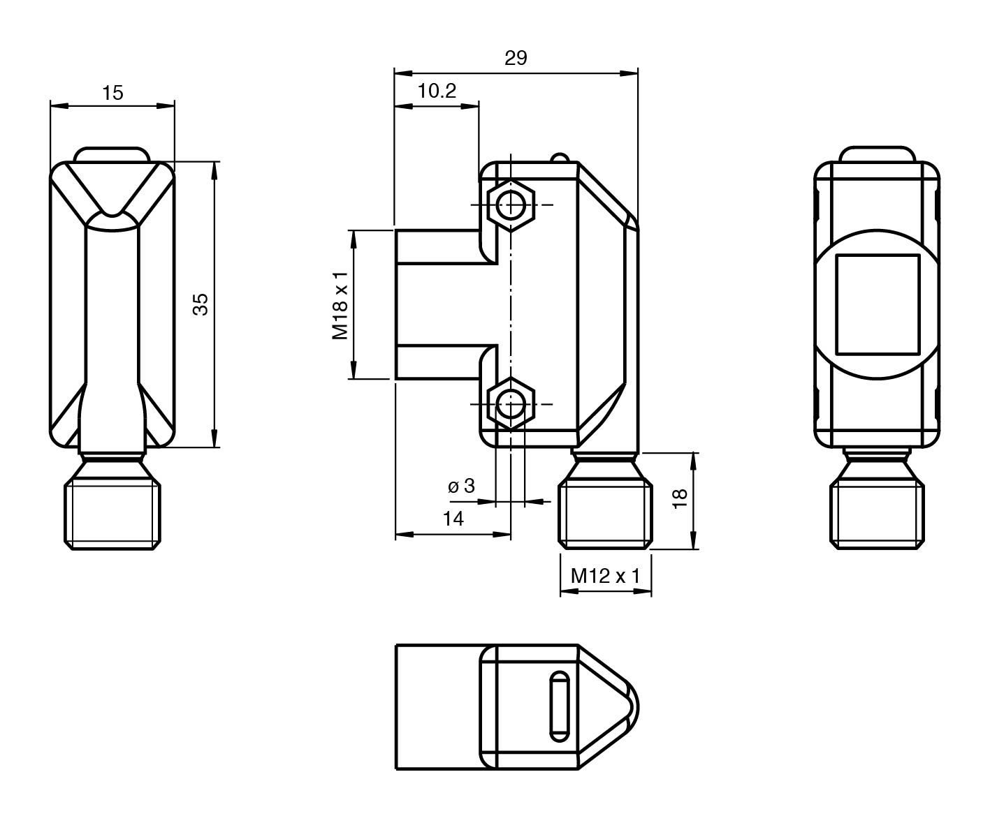 Front mounting with M18-threads or side mounting holes