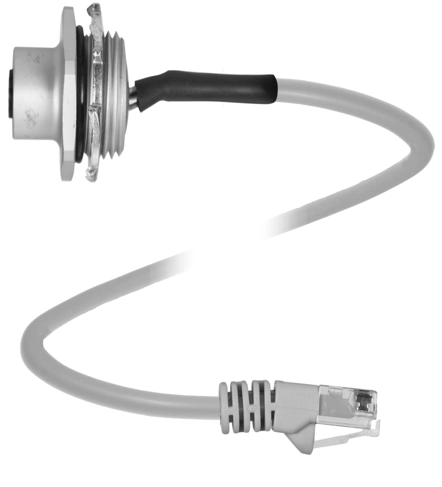 4-pin female D-coded M12 to cabled male RJ45 connector