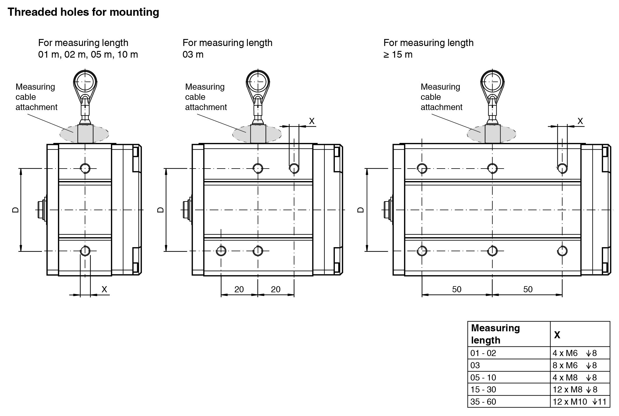 Up to 60 m of measuring cable