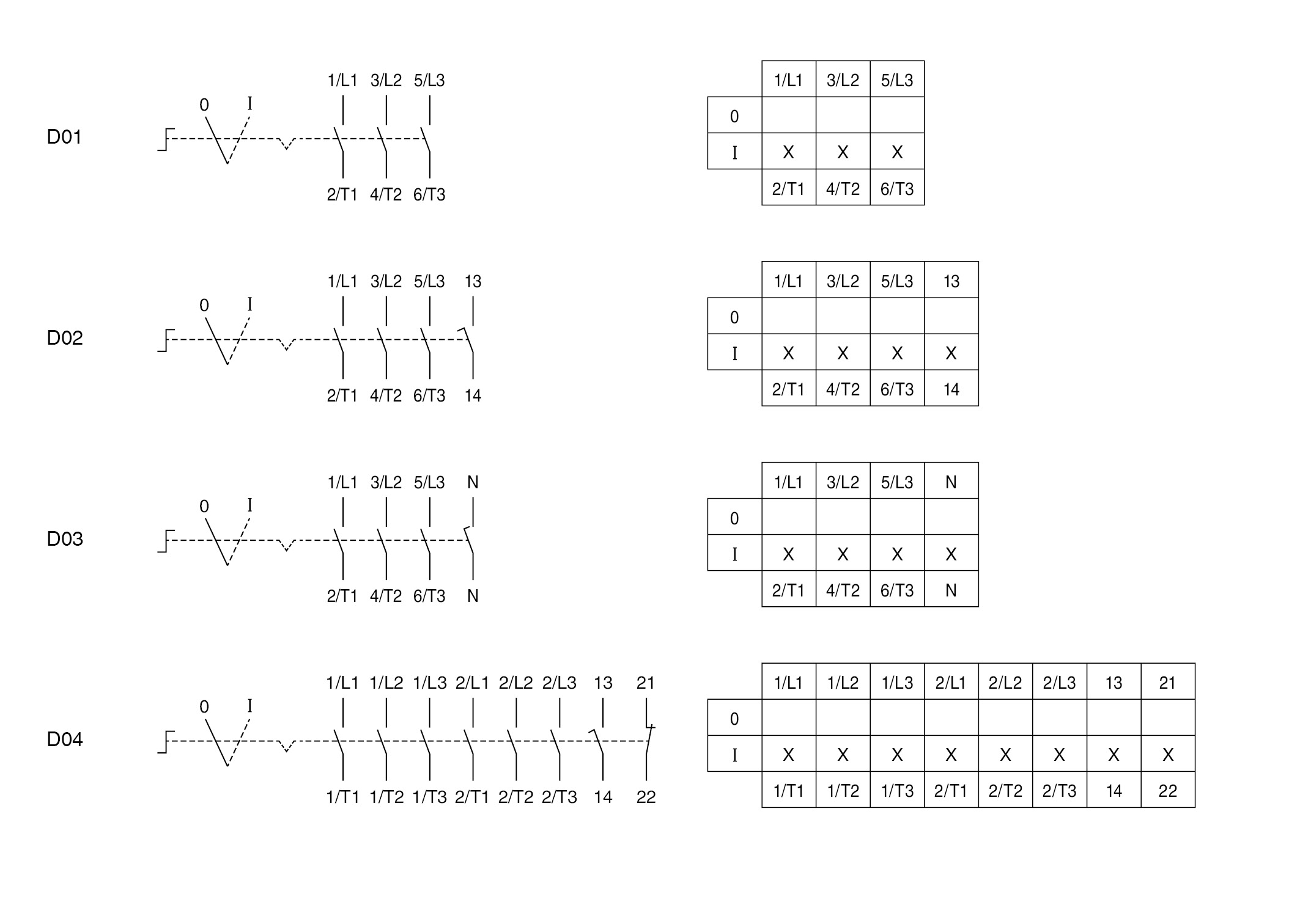 Various contact configurations and pole numbers