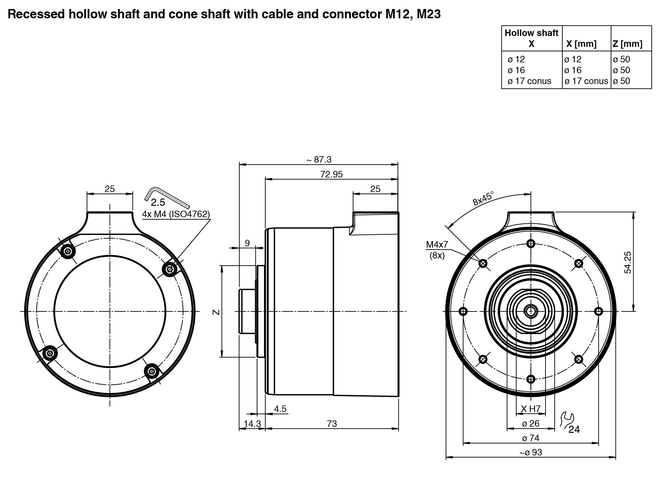 Recessed hollow shaft